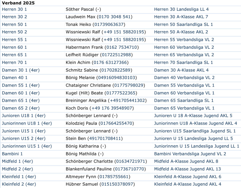 Folgende Mannschaften treten in der Winterhallenrunde 25/26 an: